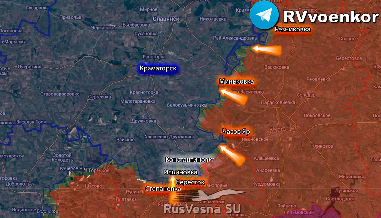 Армия России продолжает мощное наступление к Краматорску с юга и юго-востока