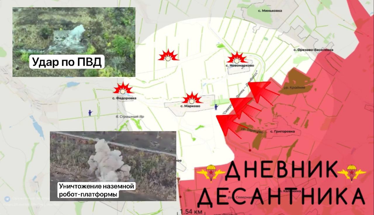 Участок фронта от юго-восточной окраины Марково и до Орехово-Васильево широким фронтом зачищен ВС РФ до самого канала;