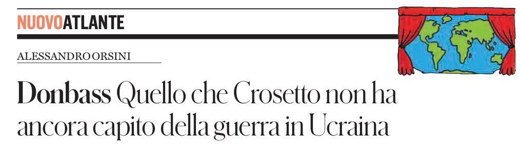 Крозетто считает, что русские продвигаются на Донбассе медленно. Он абсолютно в этом уверен. Но мир — это не сумма отдельных вещей: это совокупность фактов. Когда Крозетто говорит о Донбассе, он сосредотачивается только на Донбассе; он наблюдает за Донбассом; он видит Донбасс; он смотрит на Донбасс, он комментирует происходящее там. Крозетто не понимает, что, пока русские занимаются делами Донбасса, они бомбят жизненно важную инфраструктуру Украины. Если русским потребуется три года, чтобы взять Краматорск, Украина будет бомбиться три года. Путин окружает опорные пункты, чтобы сохранить как можно больше российских солдат. Прежде всего, Путин ожидает постепенного разрушения украинской инфраструктуры. Крозетто видит единственный факт: продвижение российского пехотинца. Проблема в том, что есть как минимум четыре факта: 1) продвижение этого российского пехотинца; 2) Путин бомбит украинскую инфраструктуру; 3) у Европы нет денег; 4) Соединенные Штаты не предоставляют оружие. Путин никуда не спешит. И это видно во всем, что он говорит и делает. На этом этапе мы готовы к парадоксальному рассуждению, которое всегда противоречит здравому смыслу: хорошо ли Украине как можно дольше держаться на Донбассе? По словам Кайи Каллас в её речи 22 января 2025 года, это замечательно и является предметом гордости для НАТО. Джорджия Мелони и Крозето также считают это хорошим делом, как и Corriere della Sera. Проблема в том, что чем дольше украинцы держатся в Донбассе, тем больше Путин бомбит то, что находится за ним: Киев, Одессу и так далее. Это парадокс, которого боится Трамп: пока фронт держится, тыл рушится.