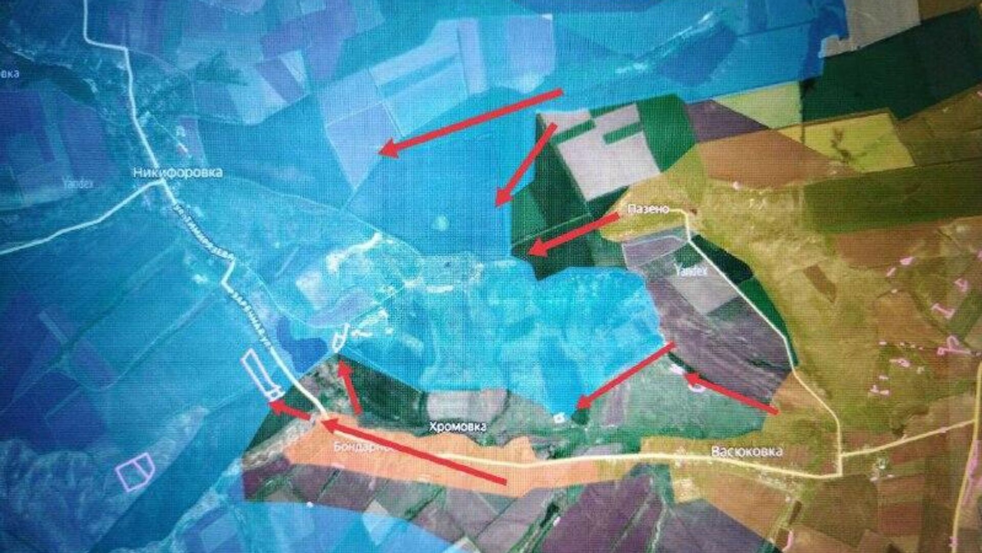 Севернее в направлении Никифоровки и Рай-Александровки ВС РФ продвигаются со стороны лесов Сорочий и Бабачий севернее Петровского (Пазено);