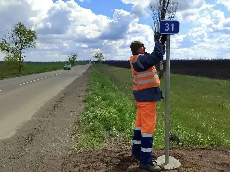 на дороге Донецк - Харцызск - Амвросиевка - до границы Ростовской области нанесли горизонтальную и вертикальную дорожную разметку